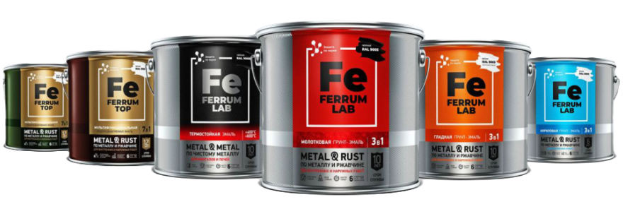 1. Грунт-эмаль «3в1» FERRUM LAB по ржавому и чистому металлу гладкая глянцевая / полуматовая различных цветов, базы А и С